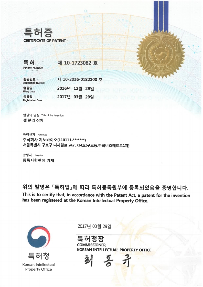 Certicficate of Patent #10-1723082