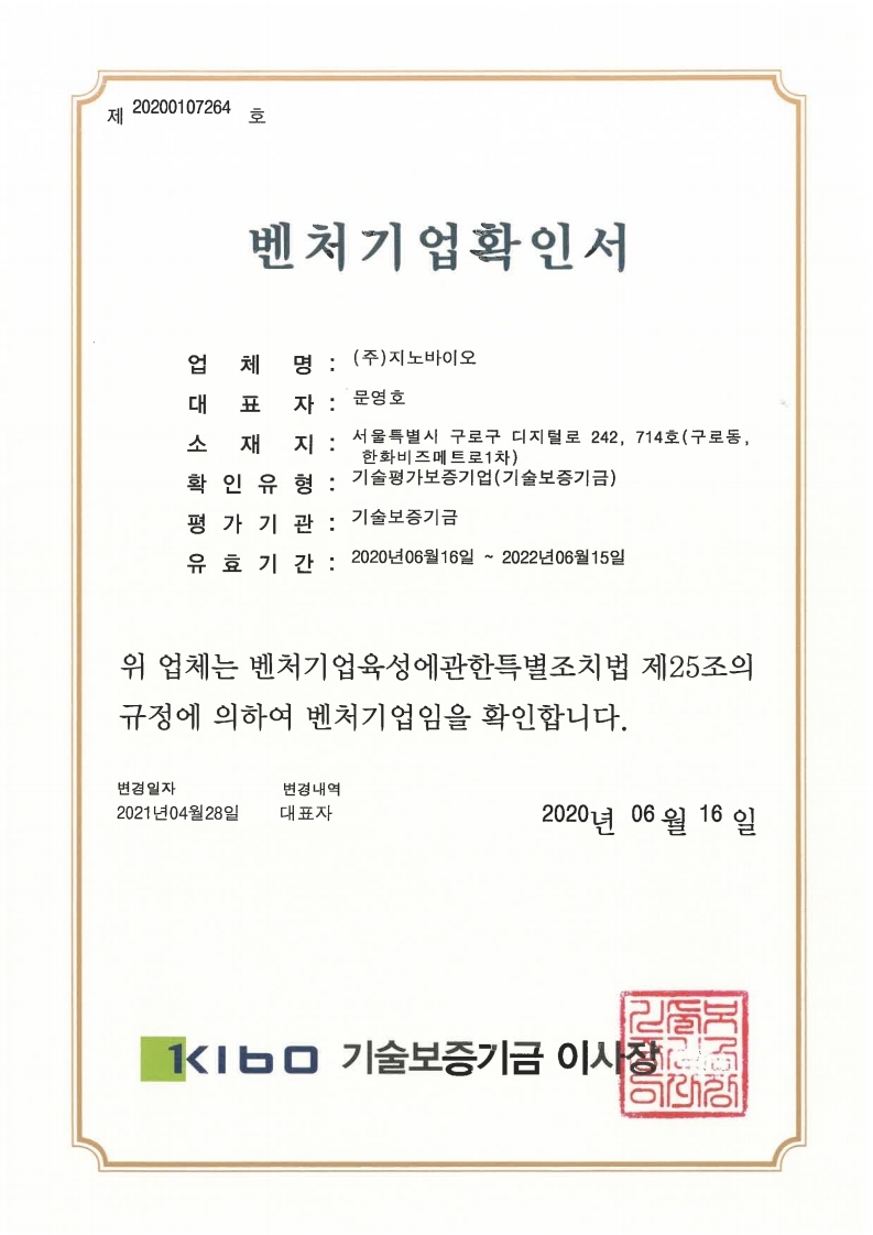 Venture company confirmation
