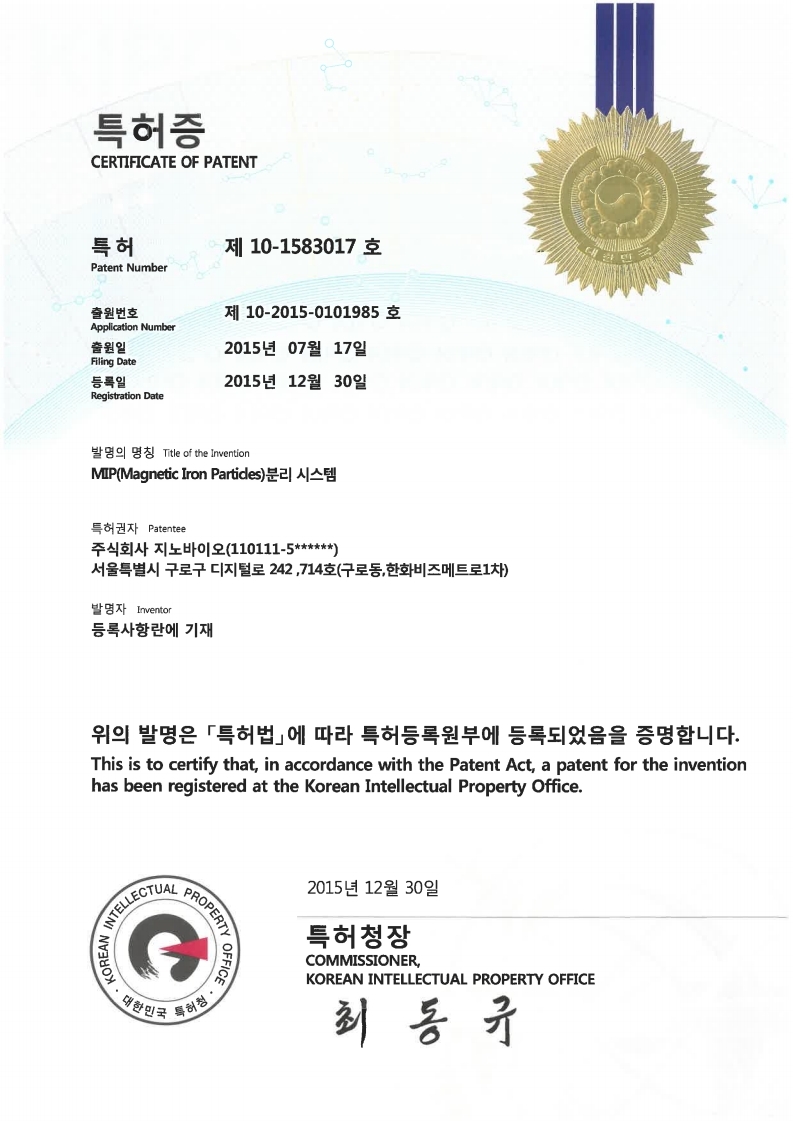 Certicficate of Patent #10-1583017