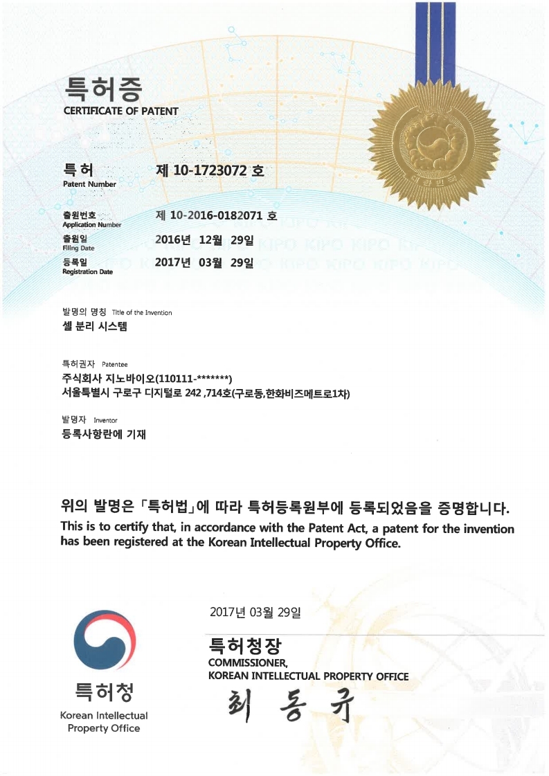 Certicficate of Patent #10-1723072