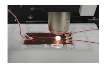 The GenoCTC device precisely controls the laminar flow within a microfluidic chip, preventing the blending of blood and buffer.